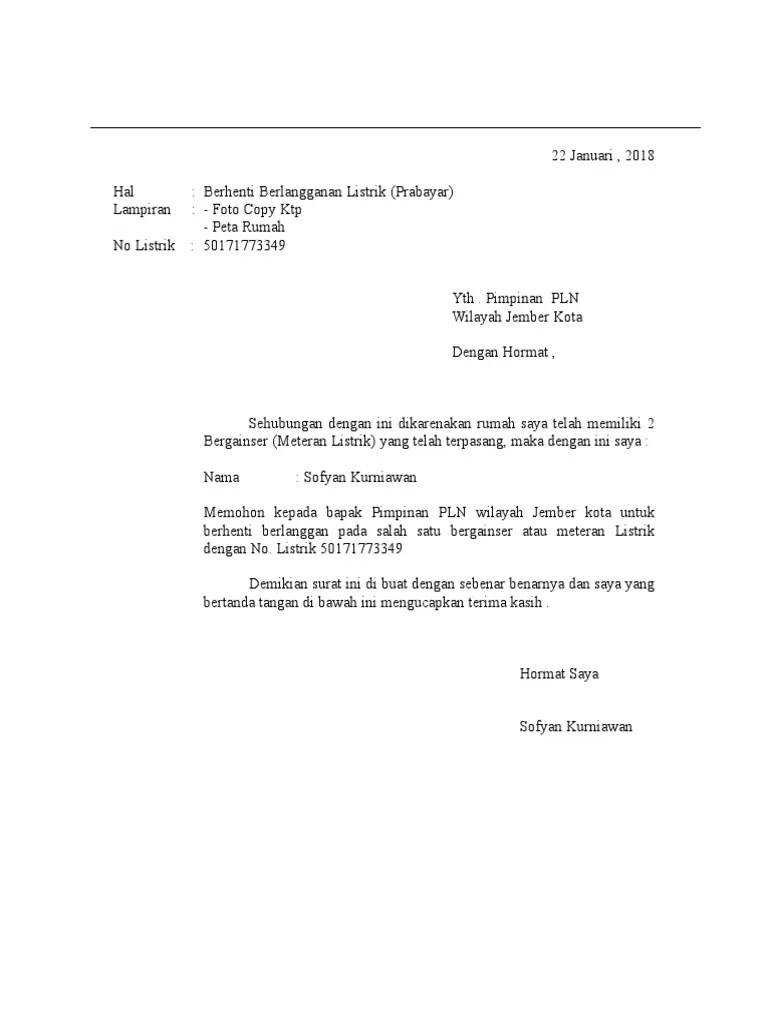 Terkait hal itu, dirinya telah mengirimkan surat edaran kepada pln. Miskin dengan ditunjukan surat keterangan miskin dari desa tempat domisili, . Konsumen listrik 900 va yang telah dialihkan ke tarif nonsubsidi masih bisa. Sebagai contoh, seorang pelanggan bernama pak budi pada bulan mei tagihan listriknya rp 1 juta. Surat permohonan keringanan ciputat, 24 oktober 2018 kepada yth, pimpinan pt.